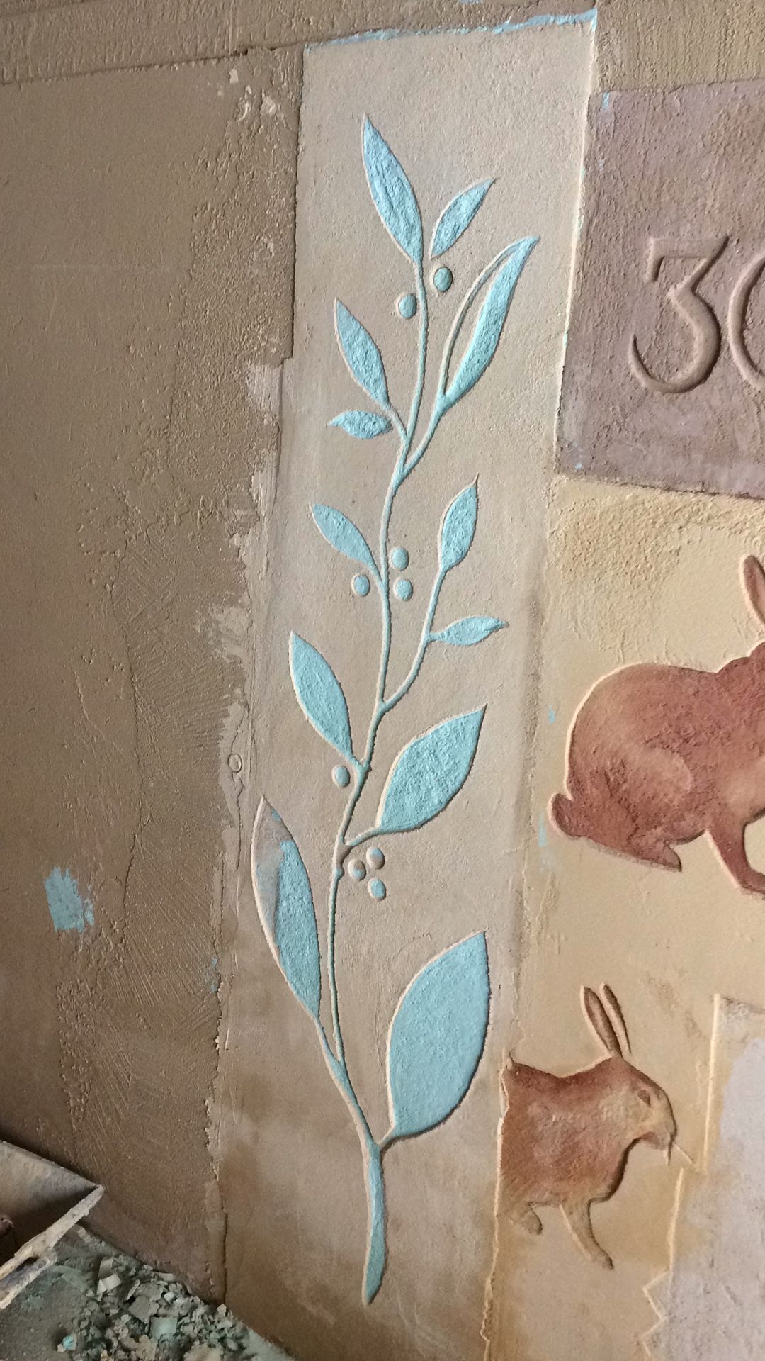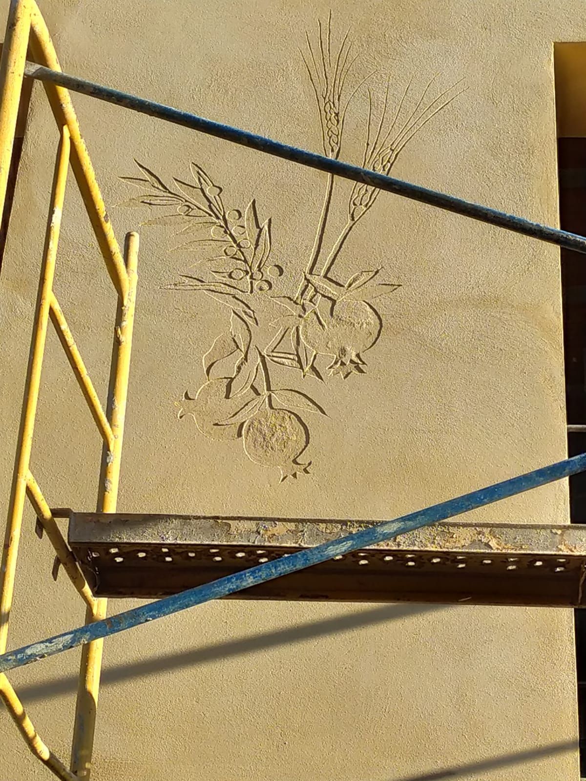 BotóPintura mural y esgrafiado para la fachada de la academia "Arts del dibuix" en Igualada